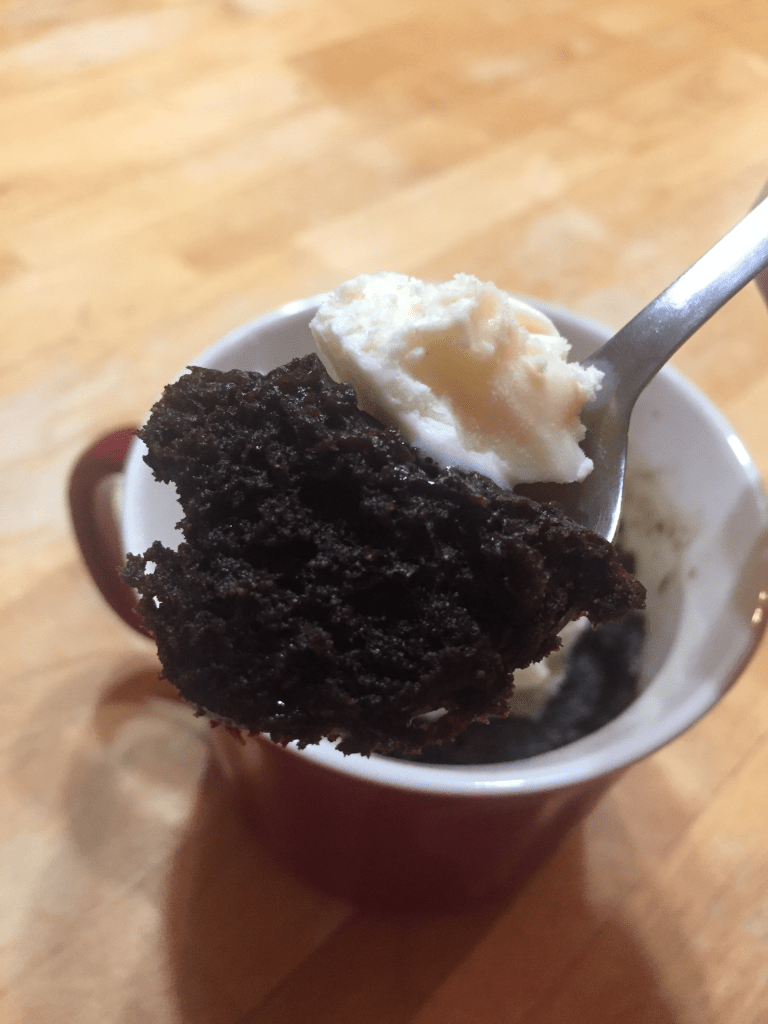 Both the cupcakes and mug cake were delicious and full of chocolate flavor. The most noticeable differences between the two however, was the texture and consistency. The mug cake’s texture was more moist but also more dense in comparison to the cupcakes.